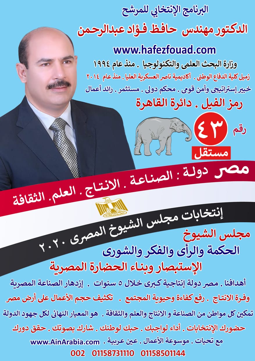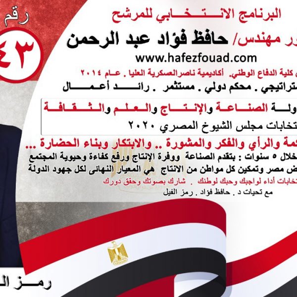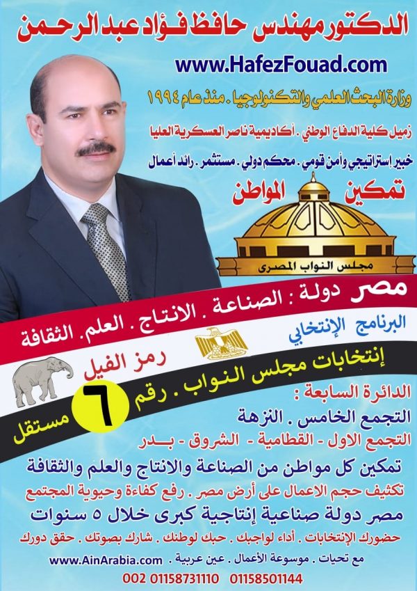 الدكتور مهندس حافظ فؤاد عبدالرحمن برنامج إنتخابى تمكين المواطن المصرى من الصناعة والانتاج والعلم