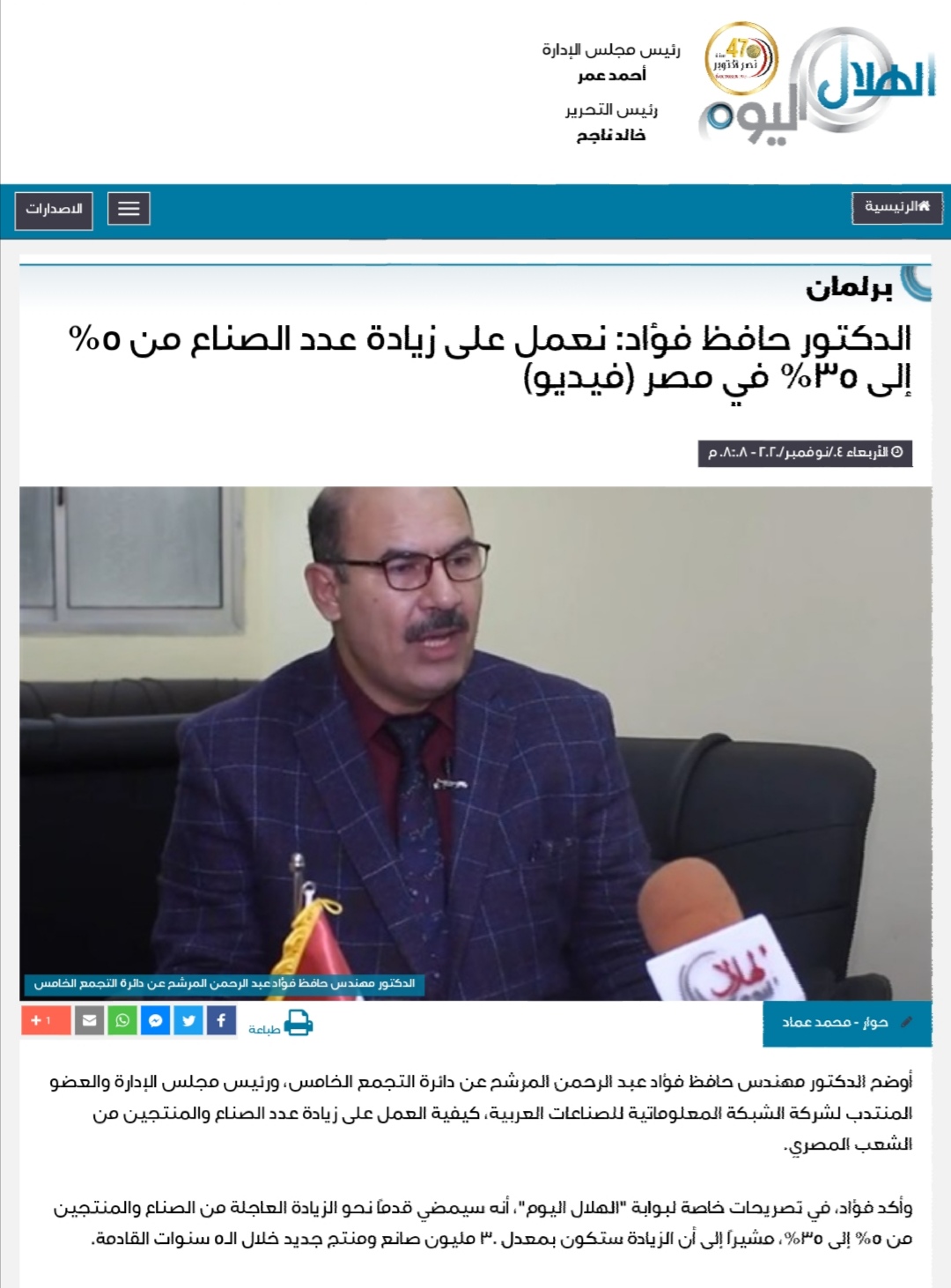 بـ«الدفعة القوية والتمويل الكثيف» حافظ فؤاد يكشف حقيقة اعتبار 2021 عام الصناعة والإنتاج والتكنولوجيا